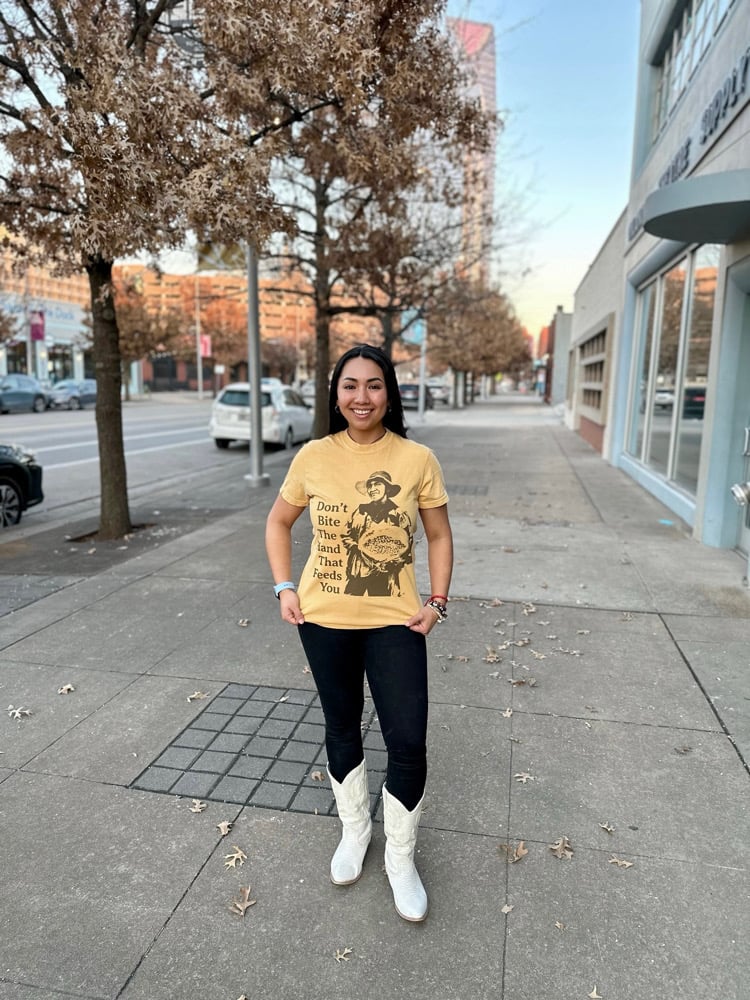 Printed on a Unisex Comfort Colors Tee in Mustard or Ivory